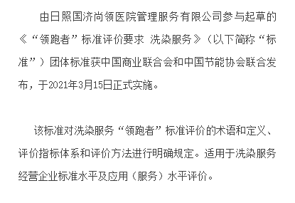 日照国济尚领参与起草的《“领跑者”标准评价要求 洗染服务》于2021年3月15日正式实施!