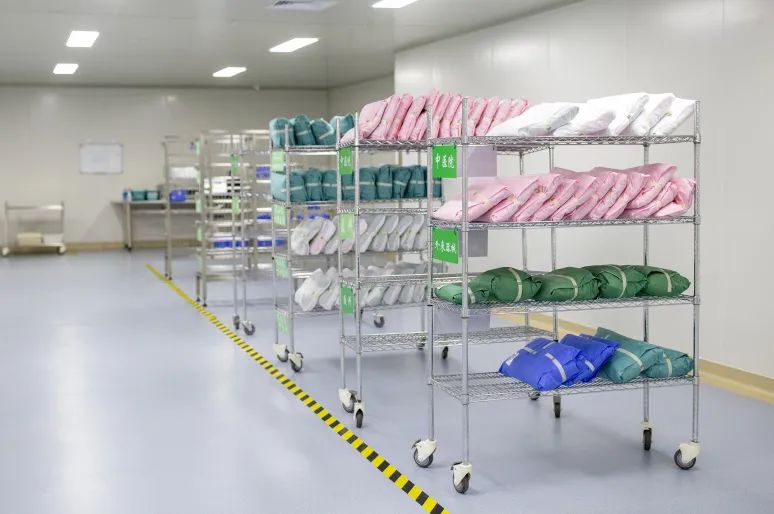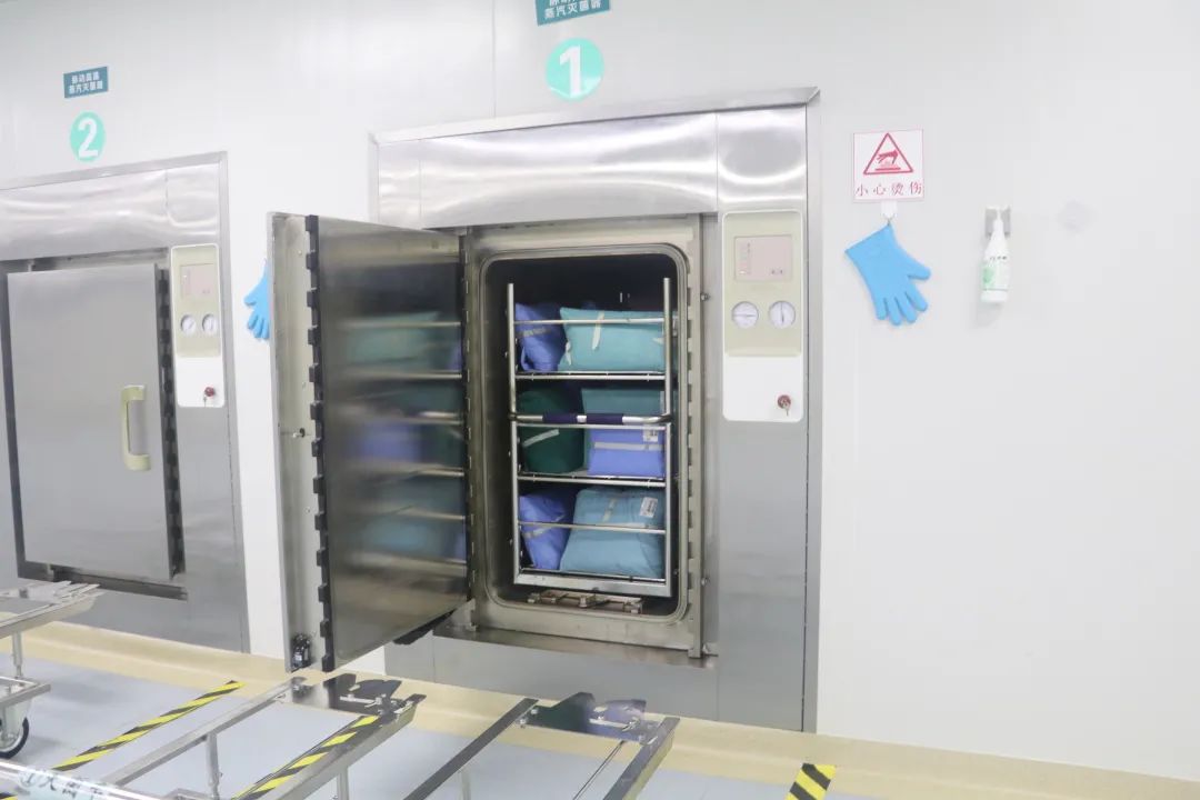 2.压力蒸汽灭菌物品出柜后应冷却≥30分钟,然后将不同物品按顺序放在架子上或篮筐内,整齐排列、定位存放、标记清楚。无菌物品存放时距墙壁≥5cm,距地面≥20cm,距天花板>50cm。